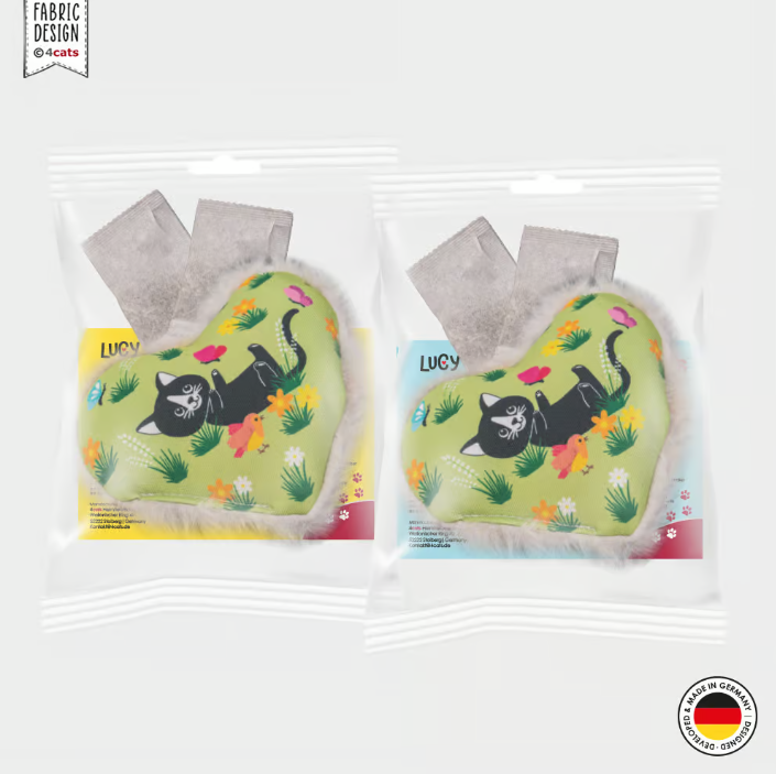 Wat is er zo bijzonder aan: Het hartje heeft een handige opening waar je zelf de kruidenvulling in kunt doen . Er wordt een papieren zakje meegeleverd met een kruidenmengsel naar keuze – en als extraatje krijg je een reservezakje voor de volgende geurverversing . Zo blijft het Lucy-hartje lang een spannende en nieuwe ervaring voor katten!