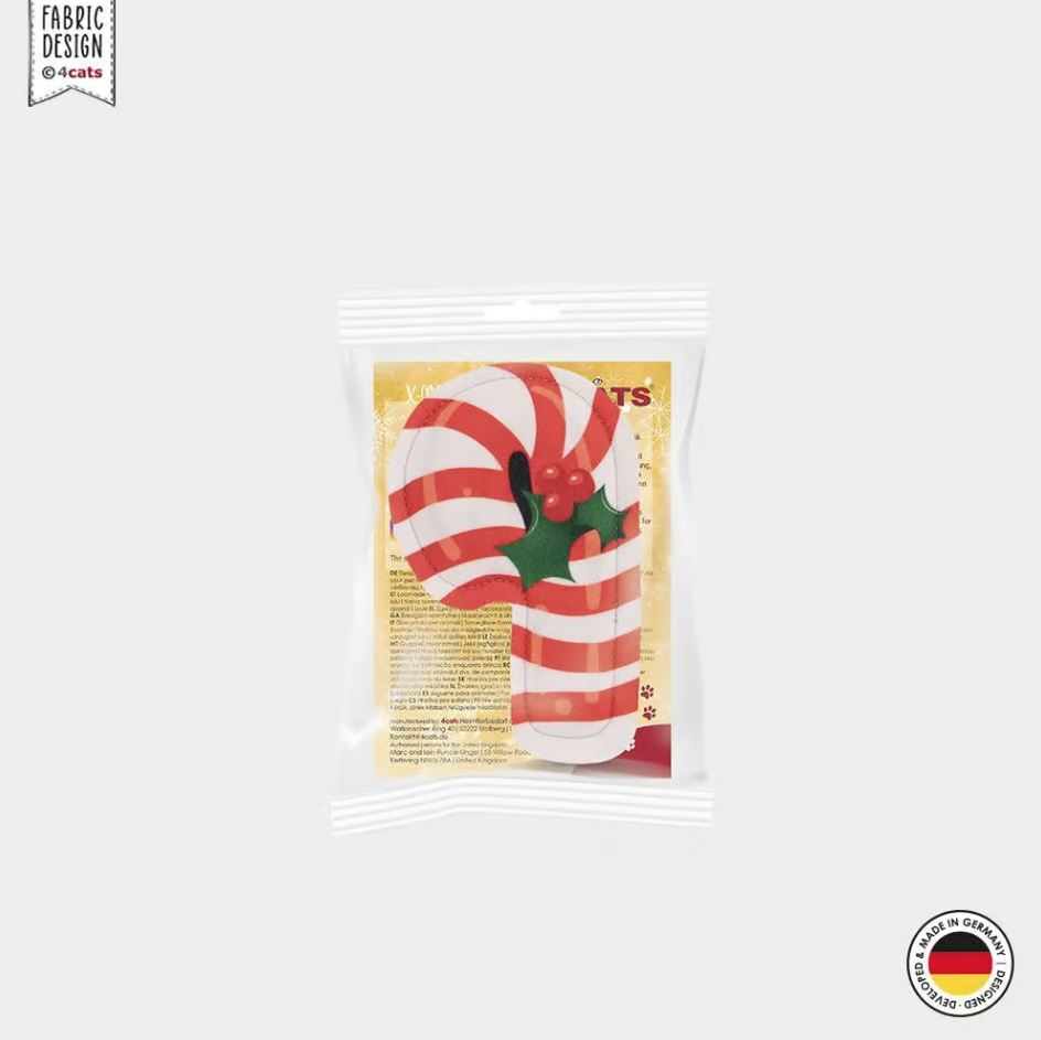 4cats Xmas Candy Cane gevuld met valeriaan of kattenkruid