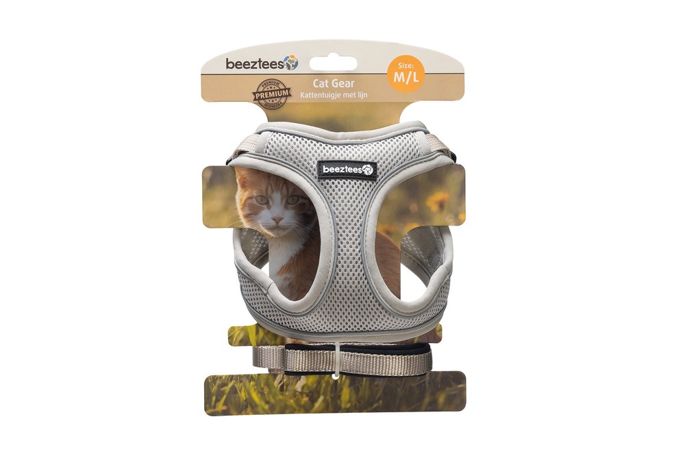 Het Beeztees Premium Parinca Kattentuig met kattenriem biedt optimaal comfort voor jouw kat. Het lichtgewichte, ademend, kattentuig is eenvoudig aan te trekken door jouw kat er met zijn of haar voorpoten in te laten stappen. Vervolgens klik je met de kliksluiting, het tuig dicht en kun je aan de stevige D-ringen de bijgevoegde kattenriem bevestigen. De bovenzijde van het tuig is te verstellen, waardoor het tuig perfect zal passen bij jouw kat. Door de reflecterende details, is jouw kat goed zichtbaar. Het handvat van de kattenriem is gevoerd met neopreen. Hierdoor ligt deze een stuk comfortabeler in de hand en zal de kattenriem niet in je handen snijden.
