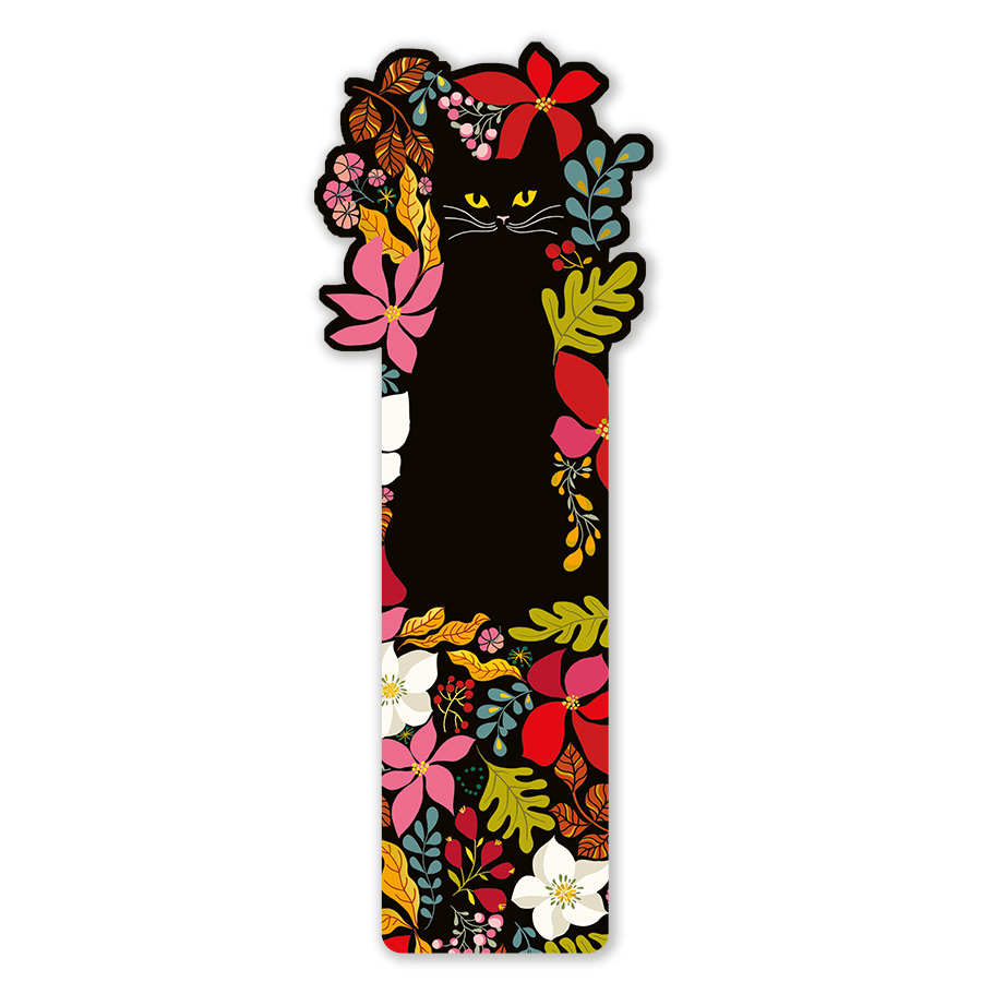 Boekenlegger uitgesneden zwarte kat en bloemen