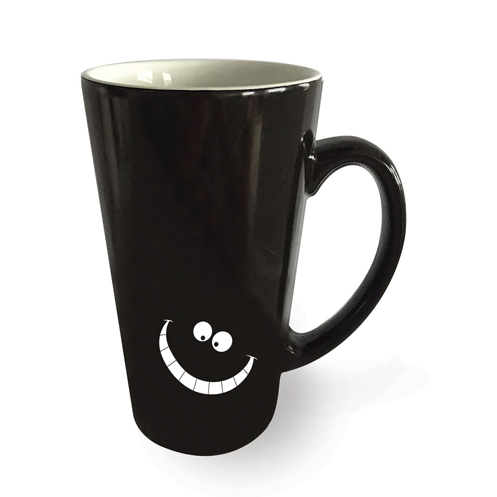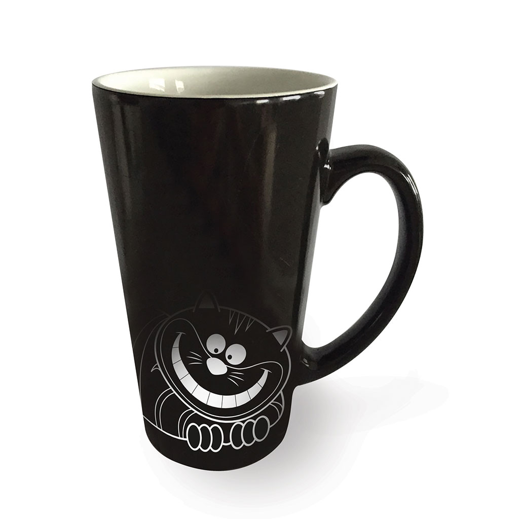 Vul de mok met warme koffie of thee en the Cheshire cat zal zachtjes verschijnen