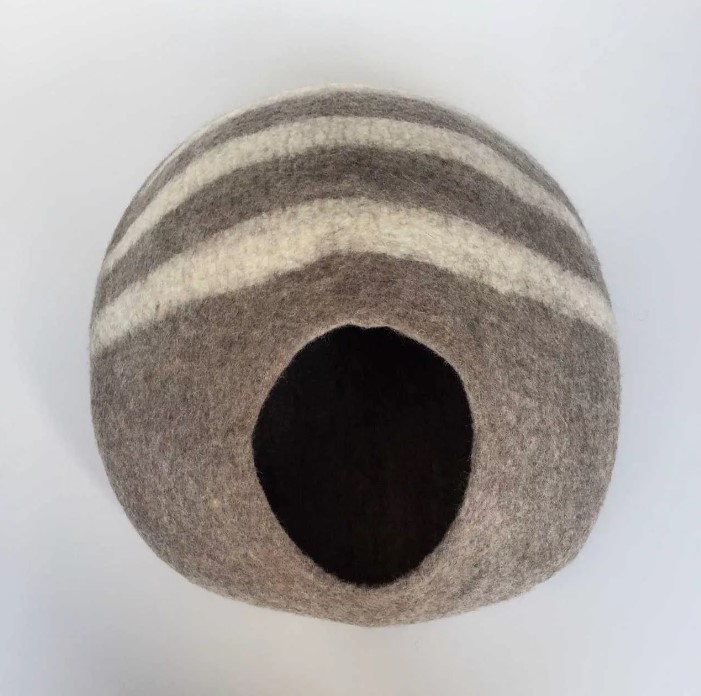 Cocoon17 – Cat Cave – cocon taupe met ecru strepen