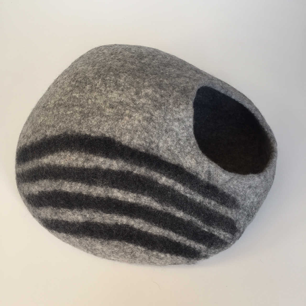 Cocoon20 – Cat Cave – cocon lichtgrijs zebra met donkere strepen opzij