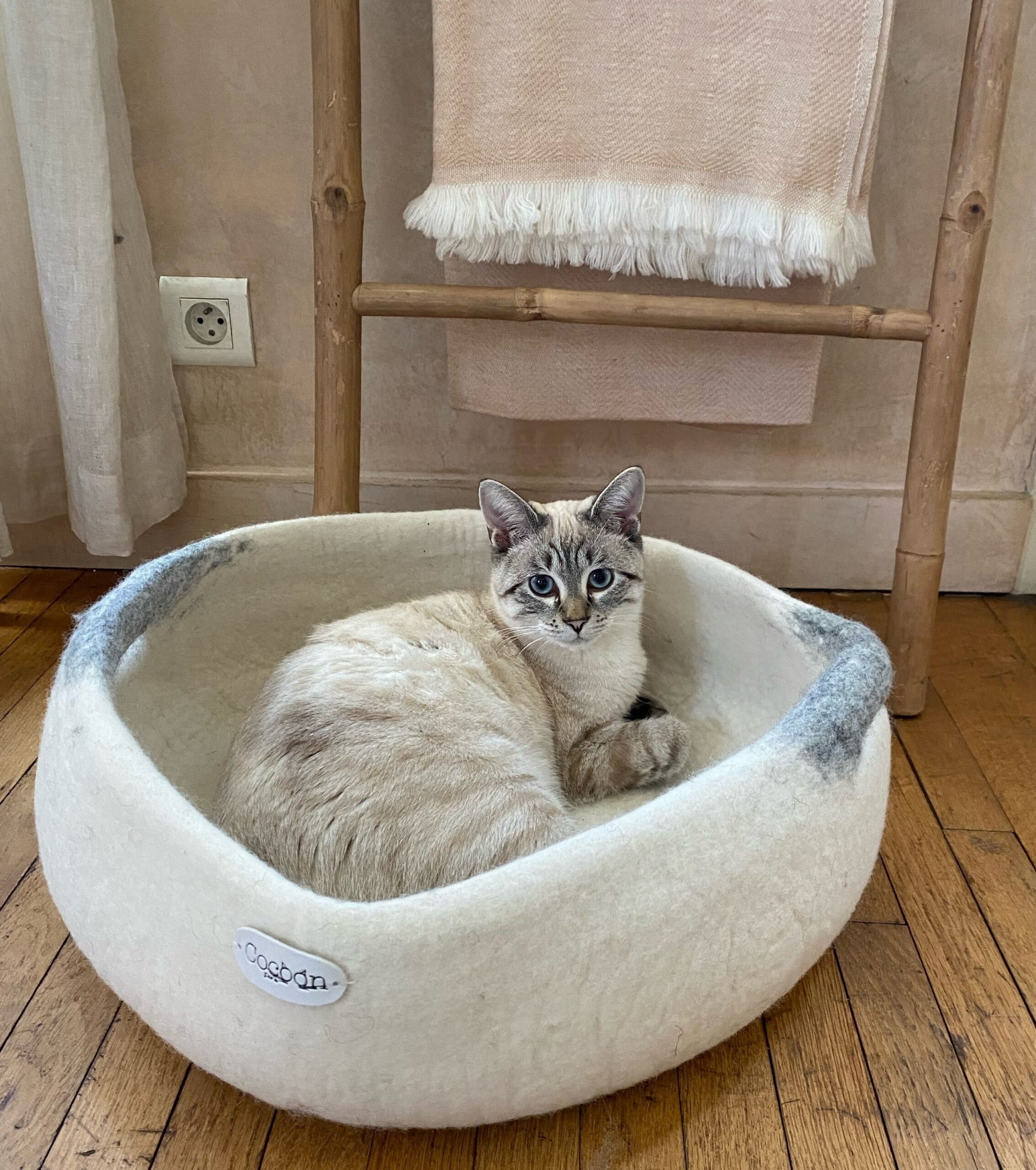 Ambachtelijk product, handgemaakt in het Cocoon atelier in Nepal. Vilt is een natuurlijke isolator; zelfs op een koude vloer blijft uw dier warm in zijn mand. Zeer elegant en comfortabel, deze mand past in elk interieur.