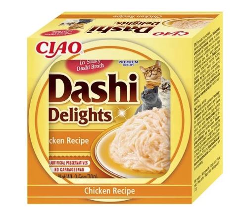 De Dashi Delights zijn zeer geschikt als topping over de normale voeding van jouw kat. Maar natuurlijk is de voeding ook perfect als extra verwennerij naast de normale voeding.