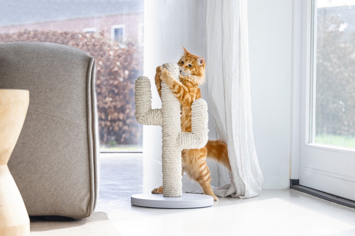 Designed by Lotte Krabpaal Cactus is een krabpaal die design en plezier combineert. De krabpaal heeft een stijlvol design en is verkrijgbaar in twee kleuren, namelijk taupe (natuur) of wit. Doordat de cactus gemaakt is van manilla touw zal uw kat veel krabplezier beleven! Door het krabben aan de krabpaal kan jouw kat zijn natuurlijke krab behoefte kwijt, waardoor meubels en tapijt met rust worden gelaten.