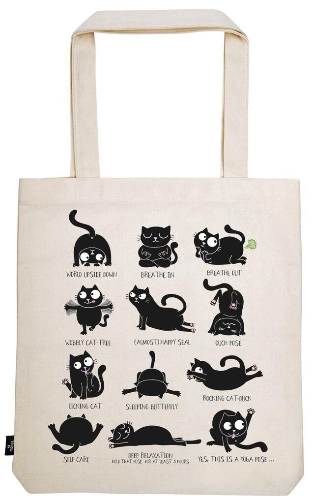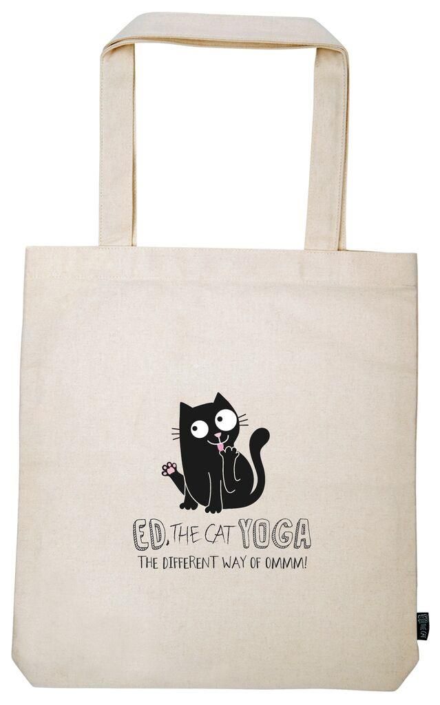 Mooie grote katoenen tas van Ed the Cat. Ed, the Cat YOGA, the different way of Ommm. Voorzien van te leuke yoga poses van Ed, te cat. Met deze shopper wil iedereen gezien worden, voor alle kattenliefhebbers.