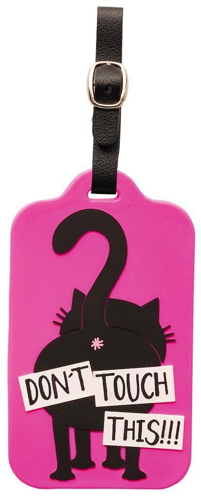 Op de roze label staat de afbeelding van de acherkant van Ed, the cat met de tekst: “Don’t touch this”.