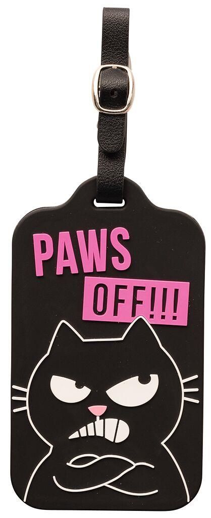 Ed, the Cat kofferlabels in het zwart en roze, gemaakt van vegan leather, met handig riempje om aan de koffer of tas te hangen.