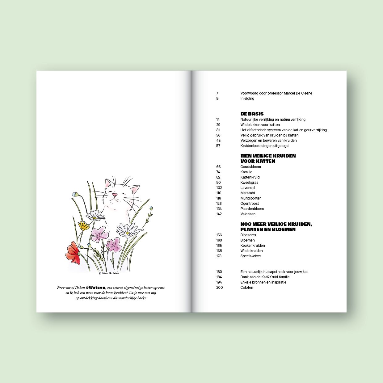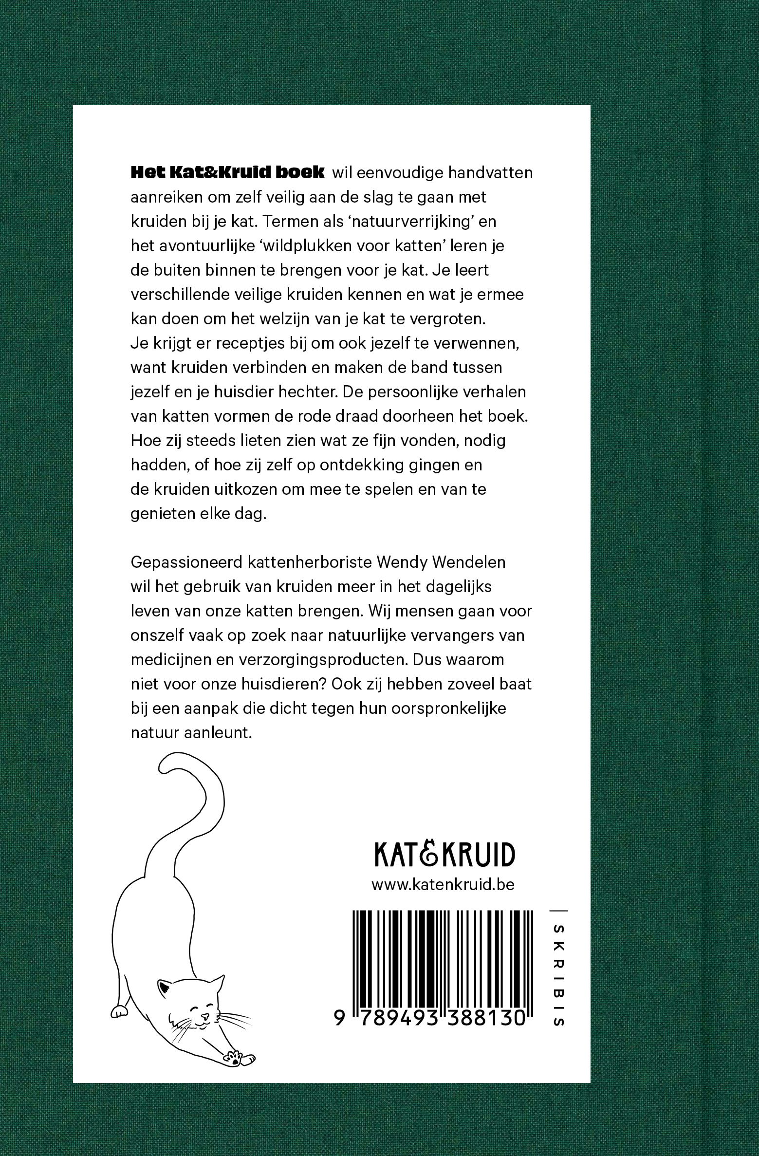 Het Kat&Kruid boek wil eenvoudige handvatten aanreiken om zelf veilig aan de slag te gaan met kruiden bij je kat. Termen als ‘natuurverrijking’ en het avontuurlijke ‘wildplukken voor katten’ leren je de buiten binnen te brengen voor je kat. Je leert verschillende veilige kruiden kennen en wat je ermee kan doen om het welzijn van je kat te vergroten. Je krijgt er receptjes bij om ook jezelf te verwennen, want kruiden verbinden en maken de band tussen Jezelf en je huisdier hechter. De persoonlijke verhalen van katten vormen de rode draad doorheen het boek. Hoe zij steeds lieten zien wat ze fijn vonden, nodig hadden, of hoe zij zelf op ontdekking gingen en de kruiden uitkozen om mee te spelen en van te genieten elke dag.