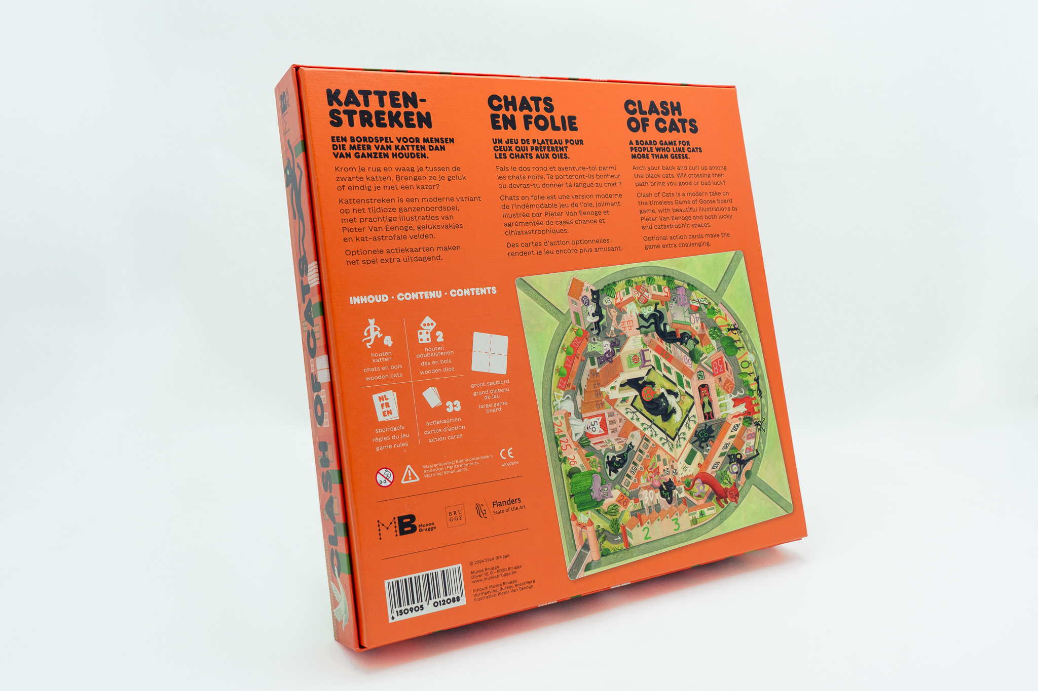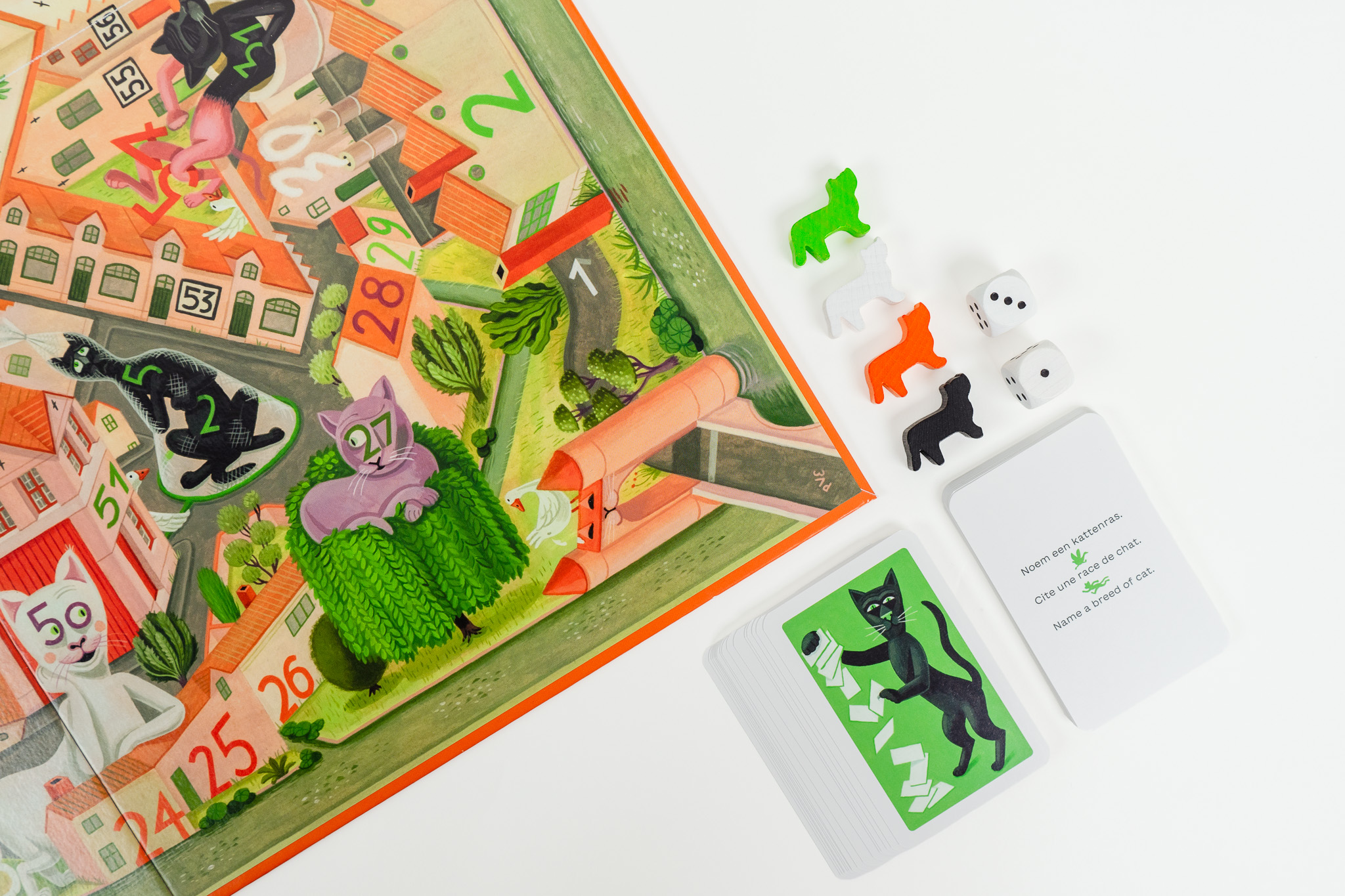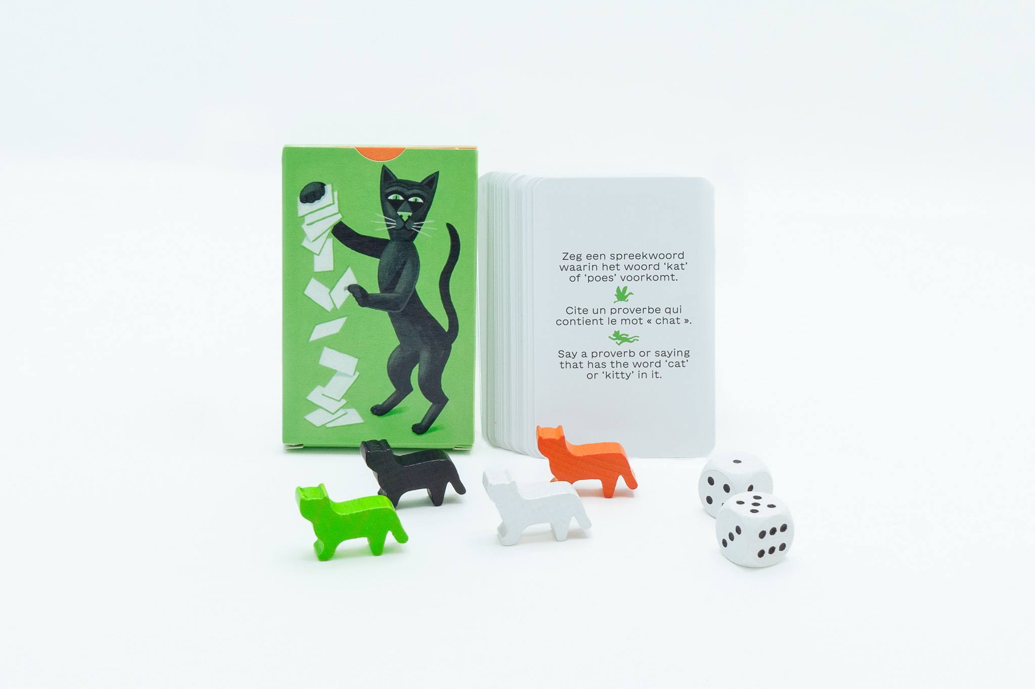 ‘Kattenstreken’ is drietalig (Nederlands, Frans, Engels) en geproduceerd door Cartamundi, wereldmarktleider in spellen en speelkaarten.