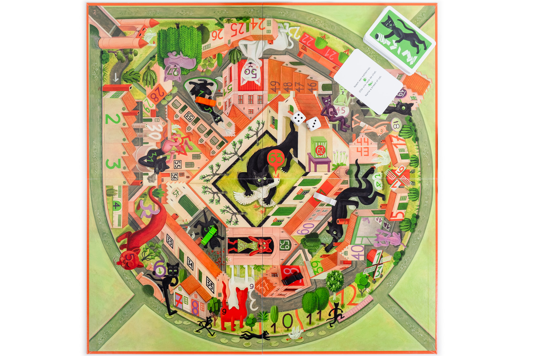 Aristide, de geliefde zwarte kat van het Brugse Volkskundemuseum, heeft nu zijn eigen gezelschapsspel: ‘Kattenstreken’. Het spel is gebaseerd op het tijdloze ganzenbordspel, met prachtige illustraties van Pieter Van Eenoge. Een must-have voor gezinnen, spelliefhebbers, Bruggelingen, museumbezoekers en kattenfans. Vanaf nu verkrijgbaar bij Musea Brugge en bij diverse (lokale) handelaars.