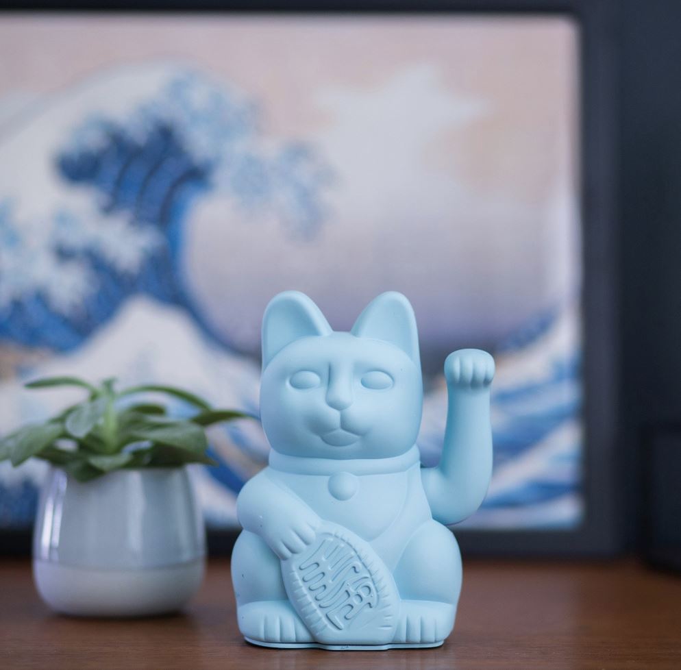 Maneki Neko Gelukskat – lucky kat light blue