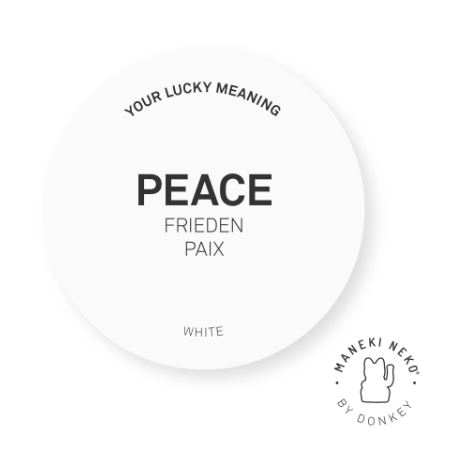 De wuivende kat draagt een munt die luid Overlevering van de op handen zijnde rijkdom Symboliseert. De kleur wit staat voor vrede.