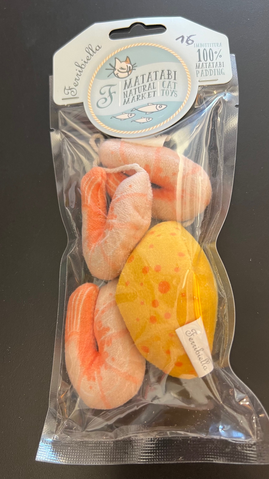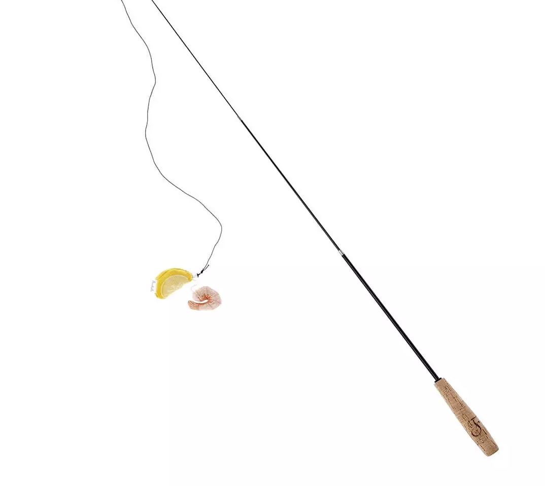 De garnalen zijn voor 100% gevuld met Matatabi (Actinidia Polygama), een onweerstaanbaar kruid voor je kat. Je kat kan lekker trappelen en knuffelen met deze grappige zeecollecties. Het enige wat je nodig hebt is de aioli en het aperitief is perfect! Maar je kan ze ook aan de telescopische hengel bevestigen. Deze is niet bij het speeltje inbegrepen en is apart te bestellen.