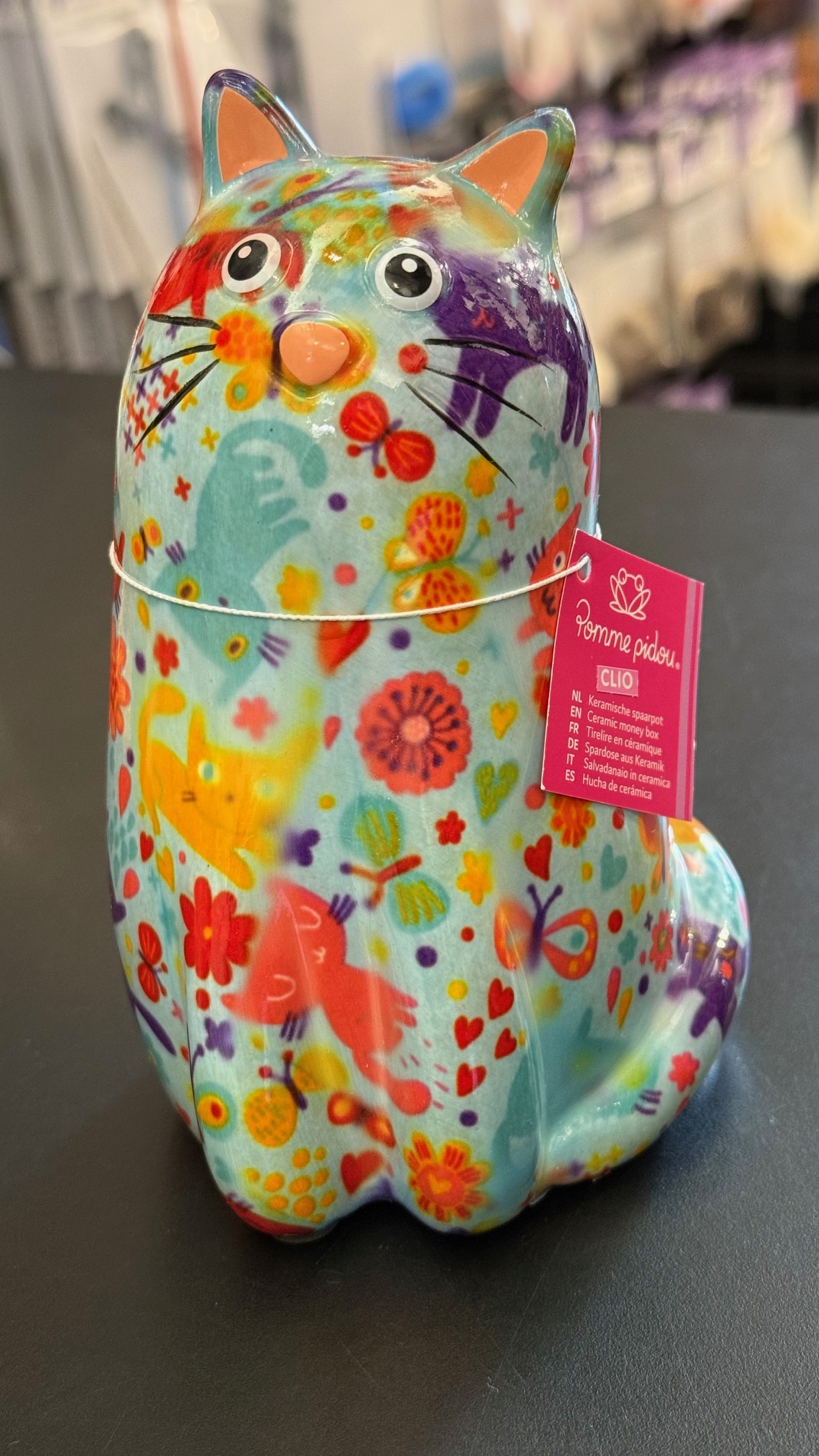 Pomme Pidou Spaarpot Cat Clio is niet alleen een leuke decoratie, maar ook een handige plek om je muntjes te bewaren. Met haar felle kleurtjes brengt ze vrolijkheid in elke ruimte.