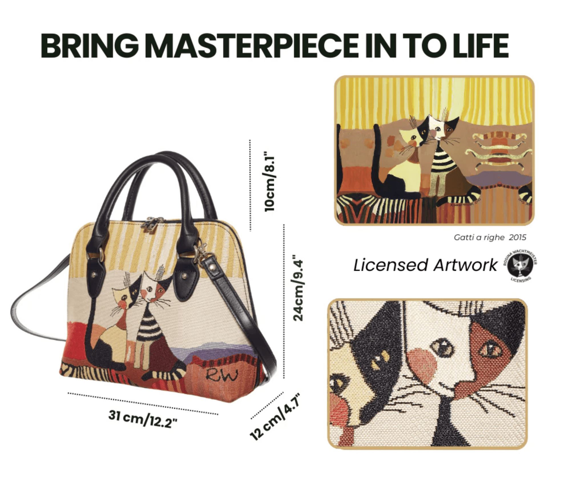 - Exquisite Tapestry Design – Geïnspireerd door Wachtmeisters iconische kattenillustraties, brengt de rijke geweven stof haar gedurfde kleuren en speelse details tot leven.