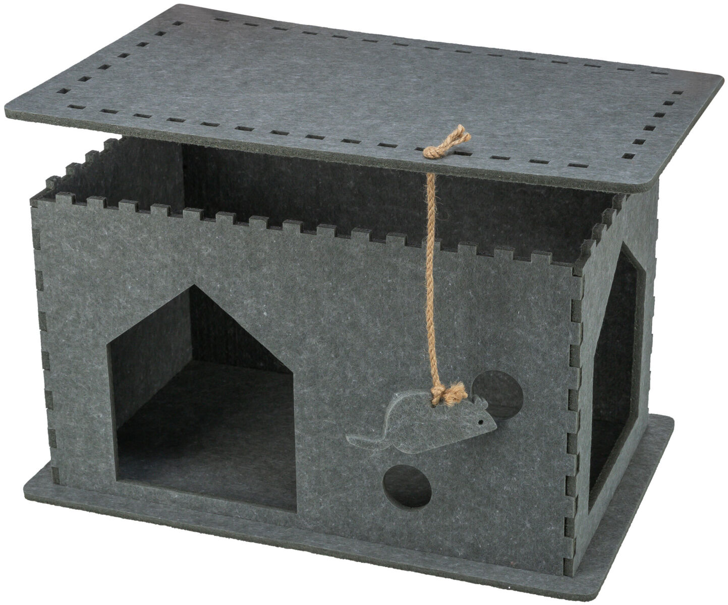 een supertof vilten huisje. Super sterk ook. Je kat kan er ook heel makkelijk op gaan liggen zonder dat het door buigt.