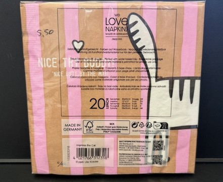 20 bedrukte papieren servetten in het formaat 33 x 33 cm of 16,5 x 16,5 cm (lunchformaat), 3-laags, materiaal: 100% tissue, lichtechte kleuren, chloorvrij gebleekt, FSC-gecertificeerd