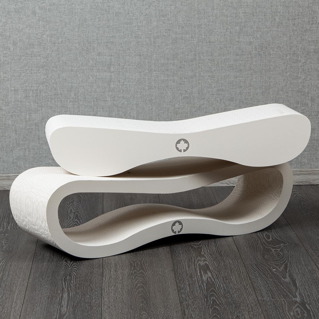 Het kattenmeubel is een welgevormde, futuristische golf voor haar leefruimte en puur plezier op twee verdiepingen voor de kat: krabben, spelen en slapen, aan beide kanten bruikbaar. En nu is er een special editon uit: een volledige witte of volledig zwarte betonlook uitvoering… hoe stylish is dit? En meteen een volledige set… die je apart op samen kan gebruiken.