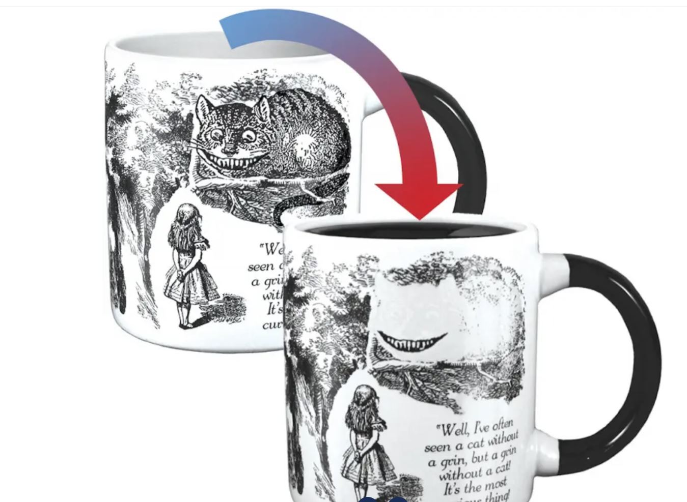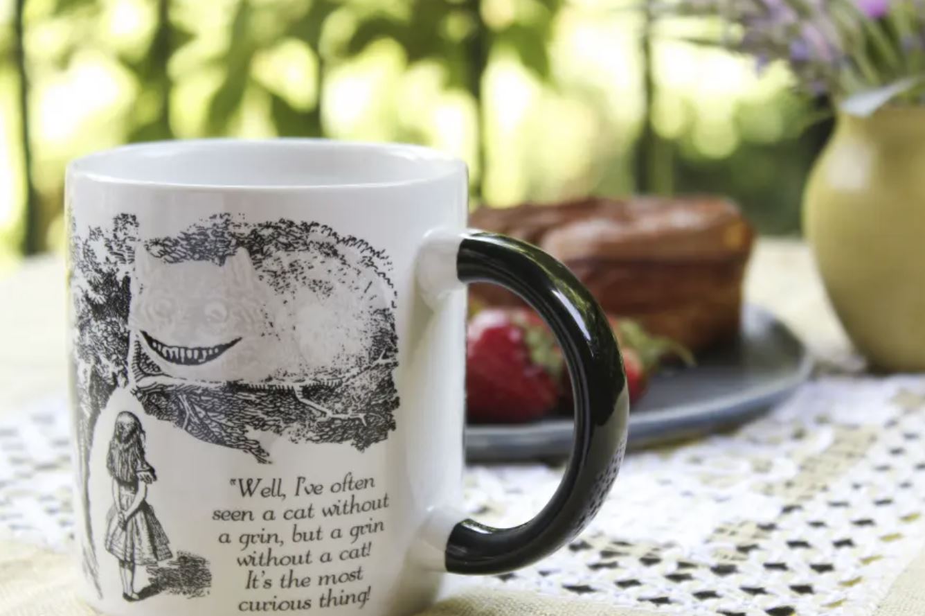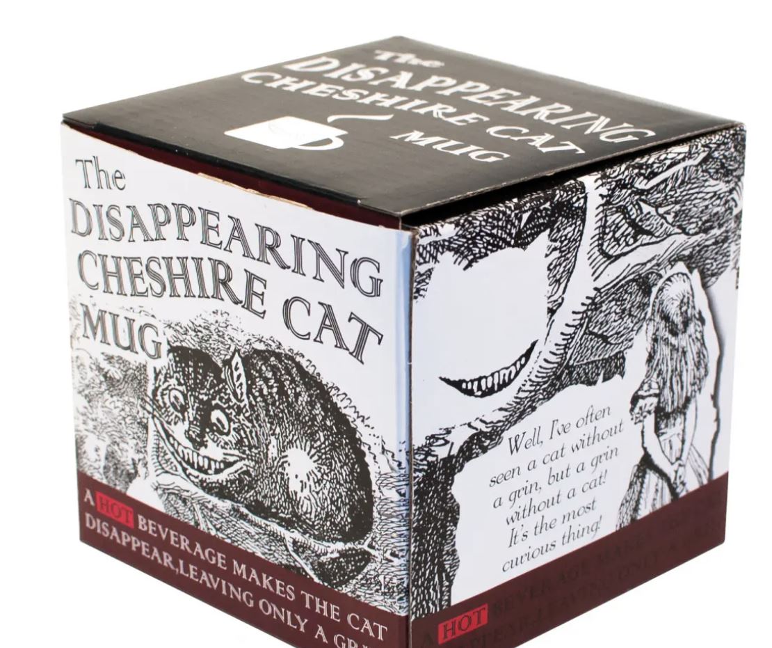 We weten niet wat Lewis Carroll dronk toen hij Alice’s Adventures in Wonderland schreef, maar we zijn er vrij zeker van dat het geen thee of koffie was. Van de Caterpillar met de waterpijp tot de Mad Hatter, zijn personages waren net zo bijzonder als Carroll zelf. De Cheshire Cat-mok van UPG viert een van de favoriete Wonderland-personages. Giet een hete vloeistof in deze mok en de kat verdwijnt en laat alleen zijn beroemde grijns achter! Het laat ook gegarandeerd een glimlach op jouw gezicht achter. De mok is niet vaatwasmachinebestendig, maar kan wel in de magnetron.