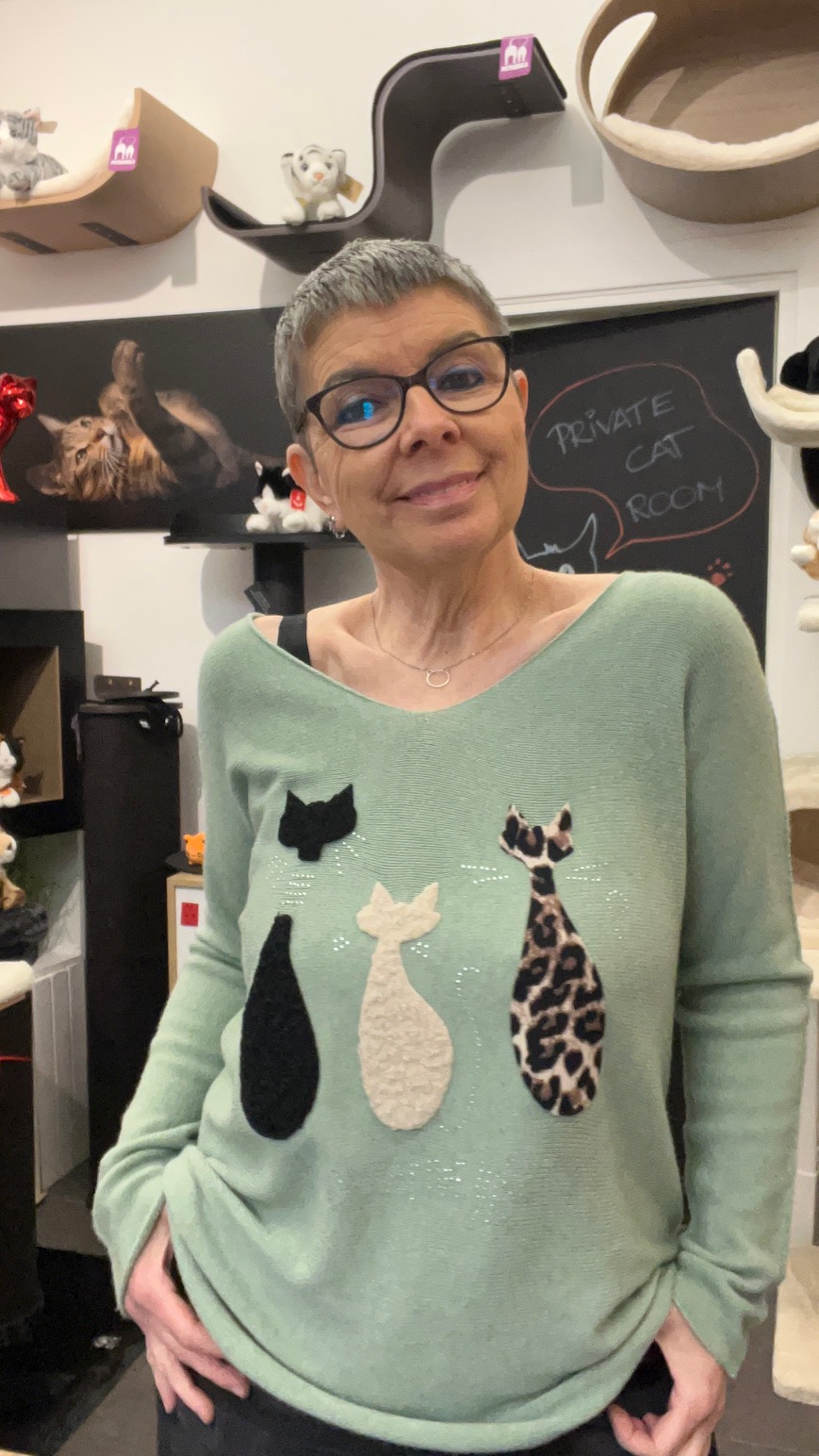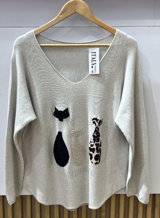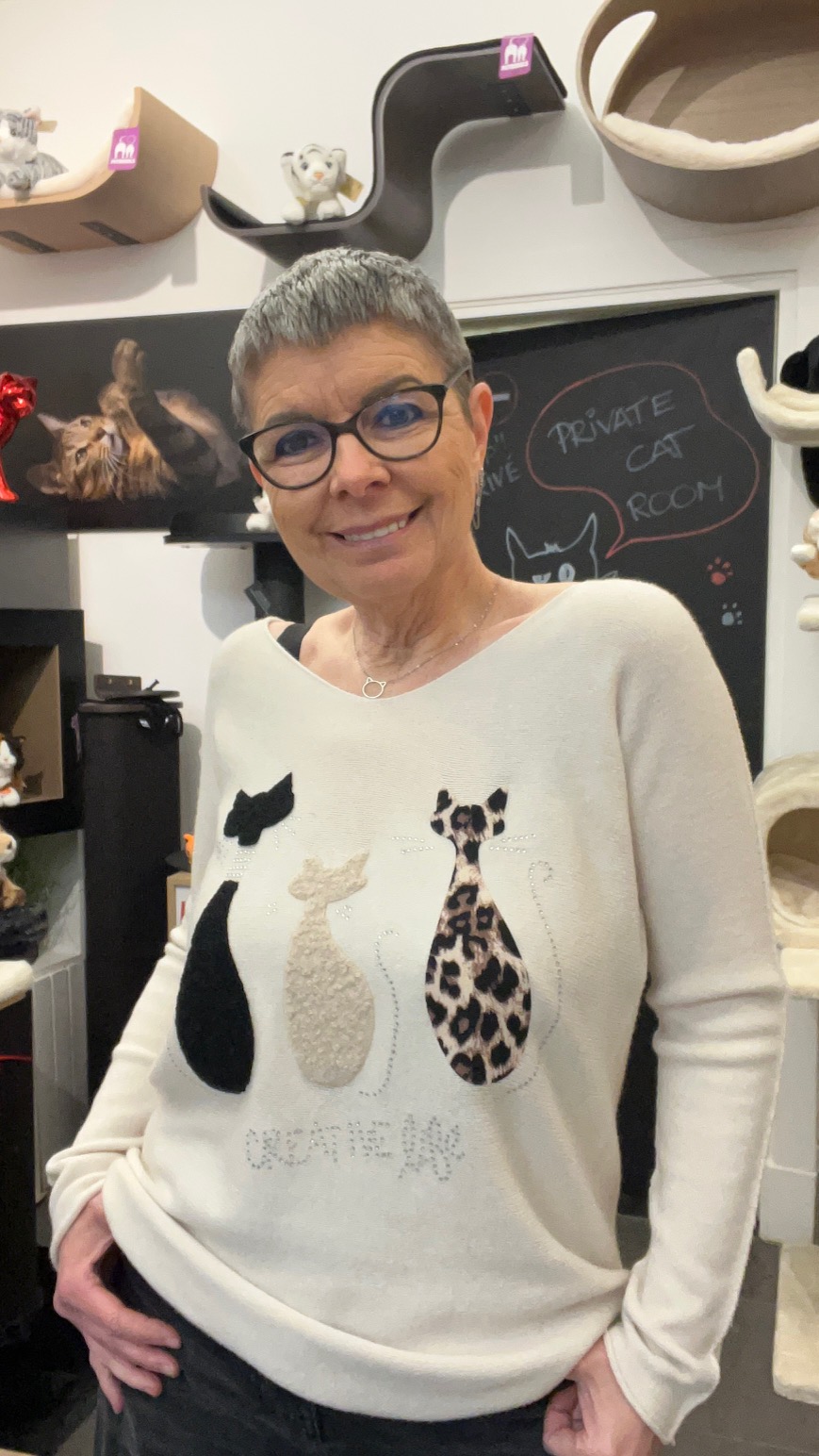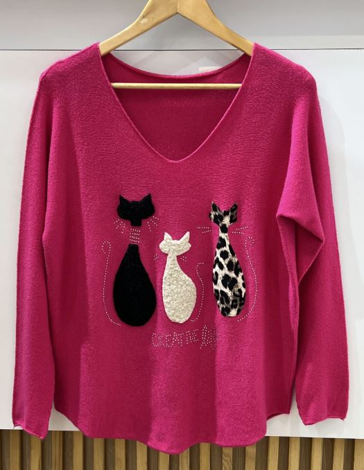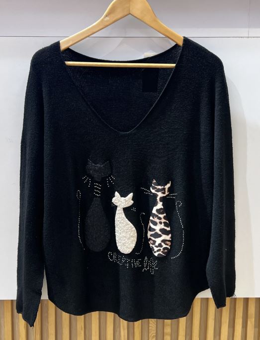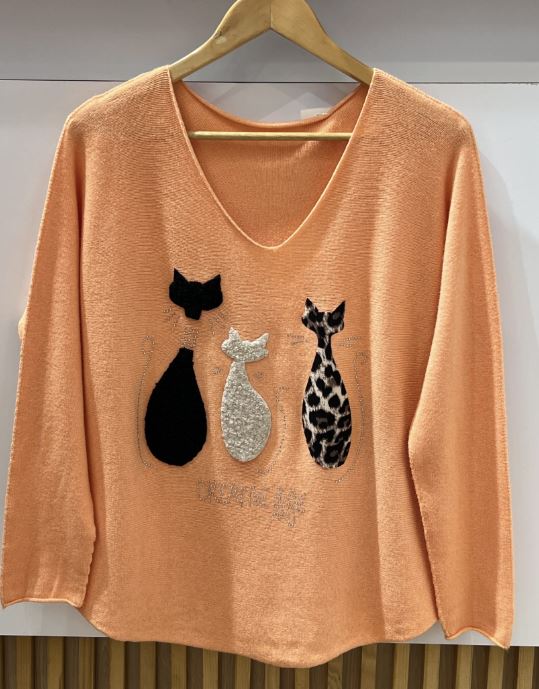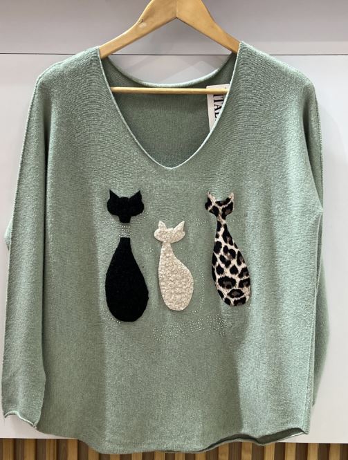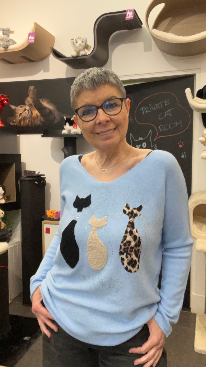Tof truitje – super zachte stof – rekt mee – met 3 katjes vooraan